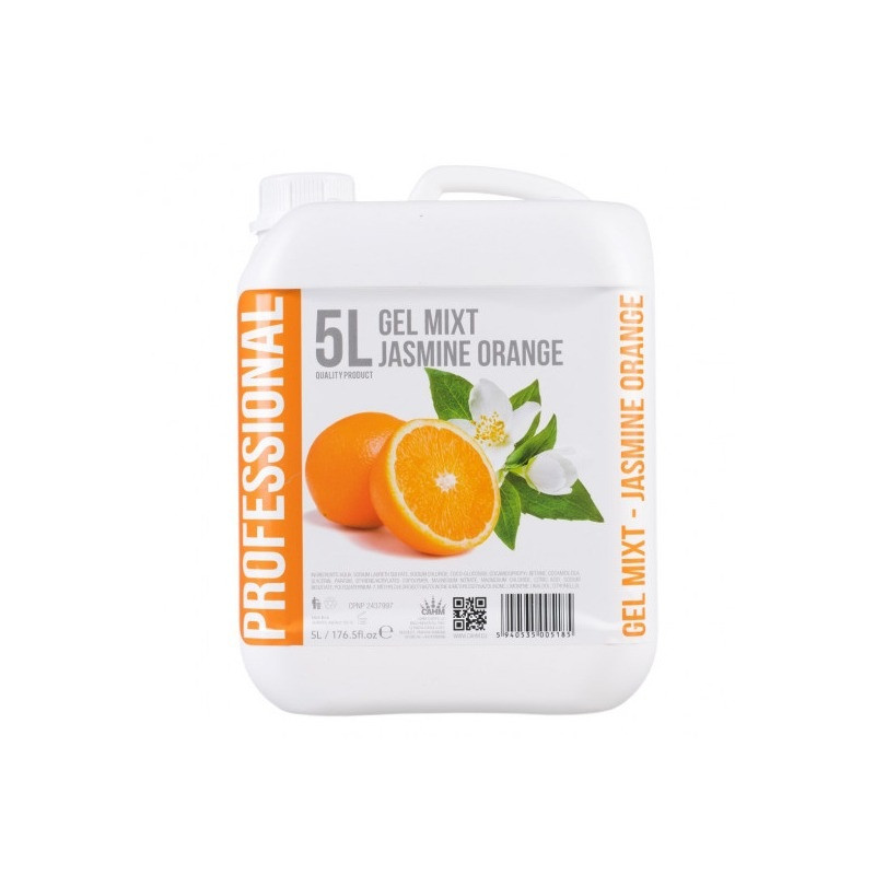 Samponul 5L se remarca prin lichidul premium, imbogatit cu parfum de iasomie si portocala